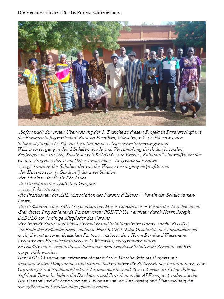 Unser Vorstandsmitglied Bernhard Wiesemann hat seine Projektarbeit mit den Partnern in Réo dokumentiert und zur Veröffentlichung freigegeben. Ebenso haben unsere Freunde aus Réo, Daniel Yamba Bouda (Planung und Installation, Fachkraft und Ausbilder), Bassié Joseph Badolo (Pointoua-Partnerorganisation, NGO, Planung und